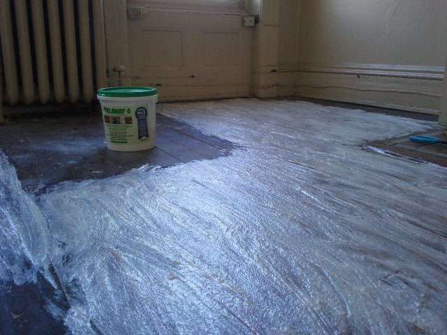 Once the many layers of vinyl flooring were removed – in some case 4 deep – it was time to tackle the paint. After all, who said that this would be easy? Cue the Peel Away 6.