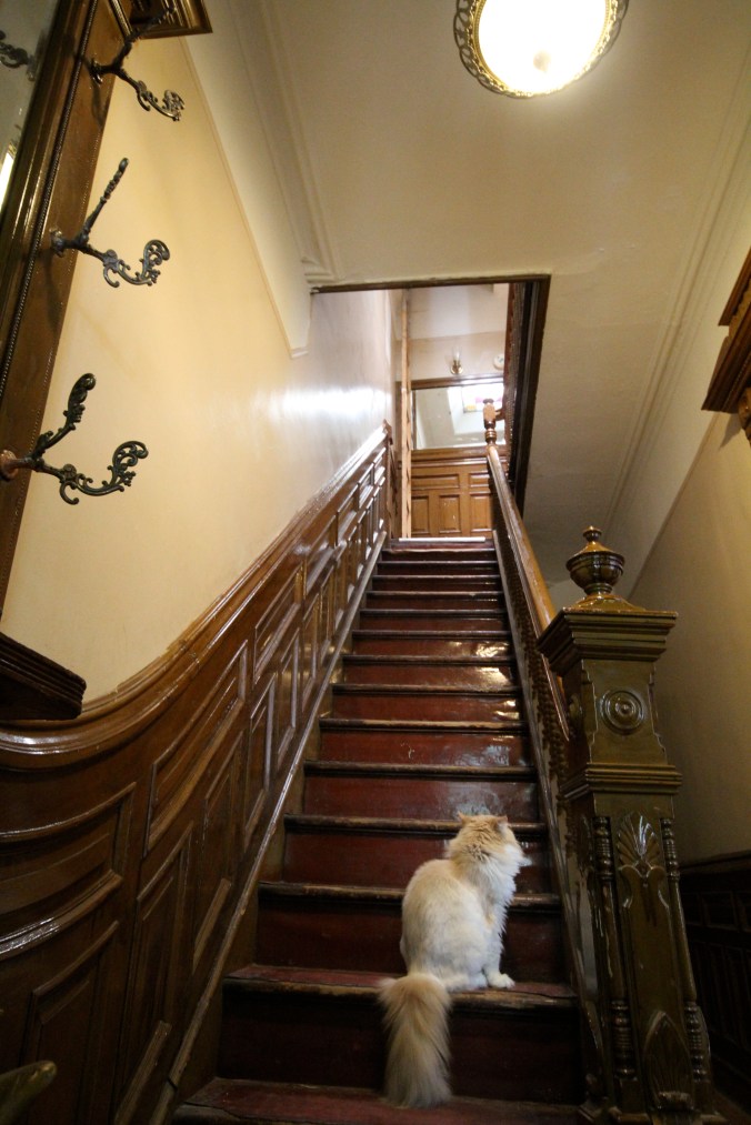 The entryway in our parlor floor has a lot going for it, yet is suffers from a constant malaise of gloominess. Brownstones are notoriously dark given the lack of side windows, and even though our front door is about 50% glass, this is still a dark and moody part of the house. The skylight above the staircase helps a lot, but whatever it contributes, the current wall color sucks away.