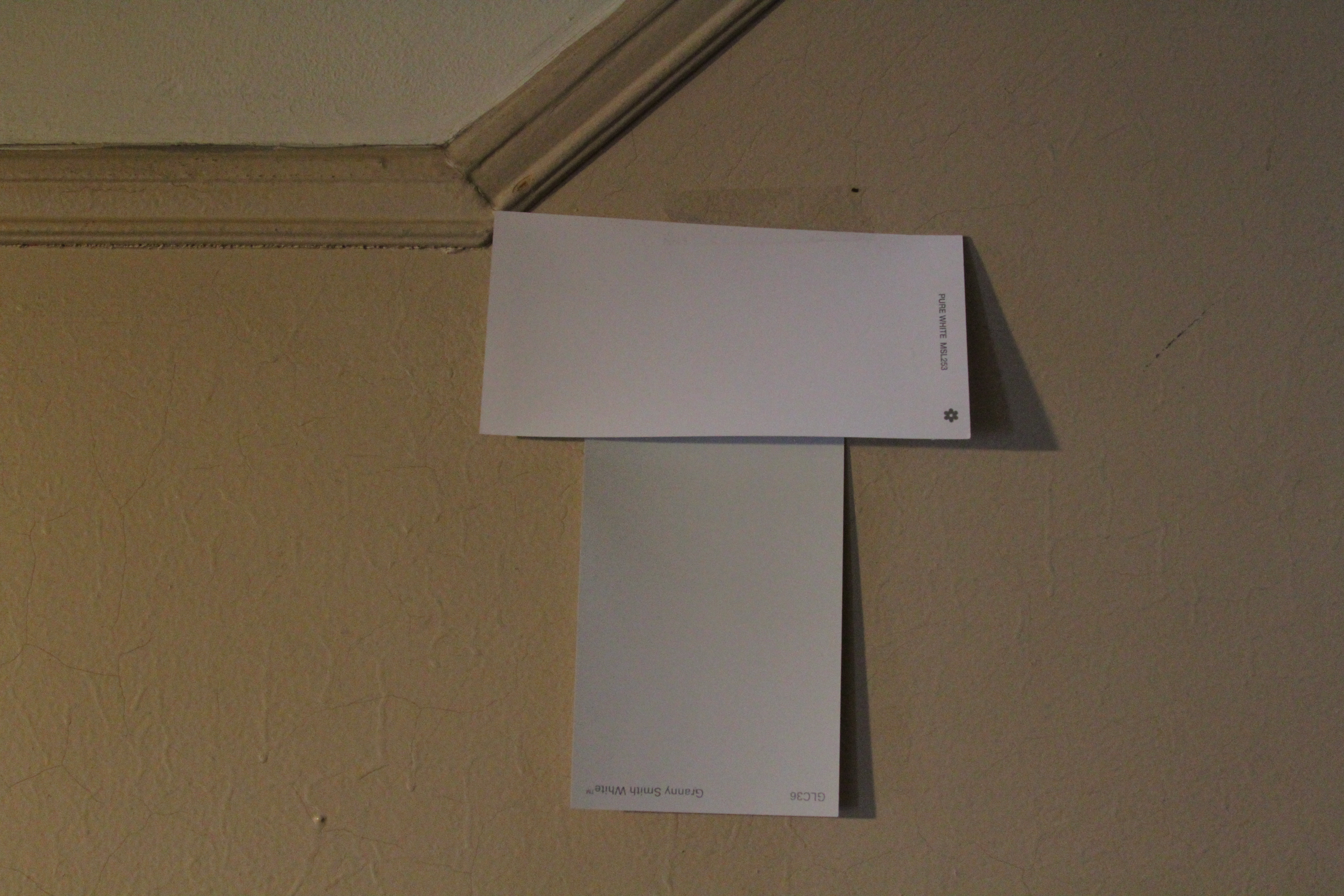 Before painting the wall needs a skim coat, since the plaster is cracking in some places and you can see paint drips from previous paint drips throughout. Paint drips are my nemesis! I figured once I have the colors picked, there will be no more excuses to get this project underway (ha!). After two trips to the BedStuy Home Depot (first time I forgot the paint chips and couldn’t remember the name of the color), I’m painting a section of the wall with Granny Smith White as the main color (in a satin finish), with the picture rail Pure White (in semi gloss) and the area above the picture rail and the ceiling Pure White (in satin finish). Off to apply the second coat (and yell at the paint drips some more). I’ll post pictures in a few days.