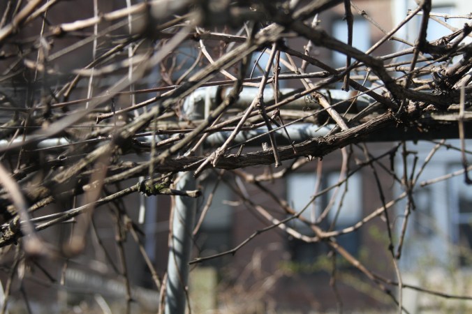 In other backyard news: the grapevine is still dormant…. us (and the neighbors) are eagerly awaiting this years’ grape harvest.