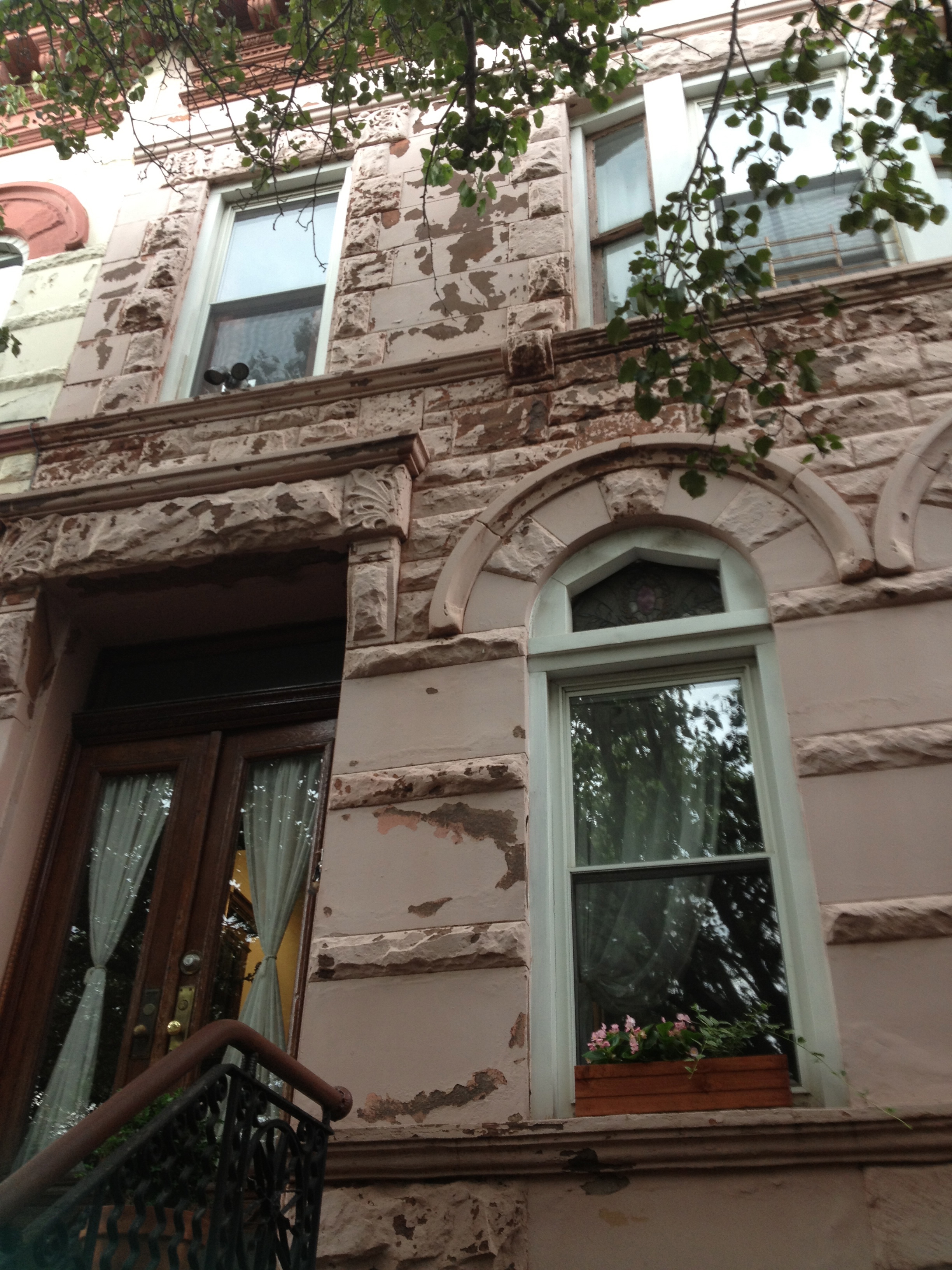 Our brownstone is pink. Well, at the moment it’s mostly pink, as the paint is peeling in large chunks.