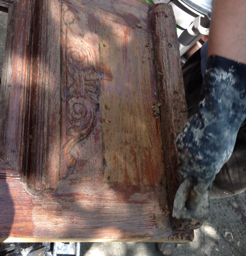 Since my experience with removing paint from the brownstone façade was pretty straight forward, we figured it would be a total cake walk to strip the walls back to the plaster. Our old friend PeelAlway1 was called back into service. Ignoring all advice to work in manageable chunks, and still under the delusion that this would be easy, we decided to tackle one whole side of the room.