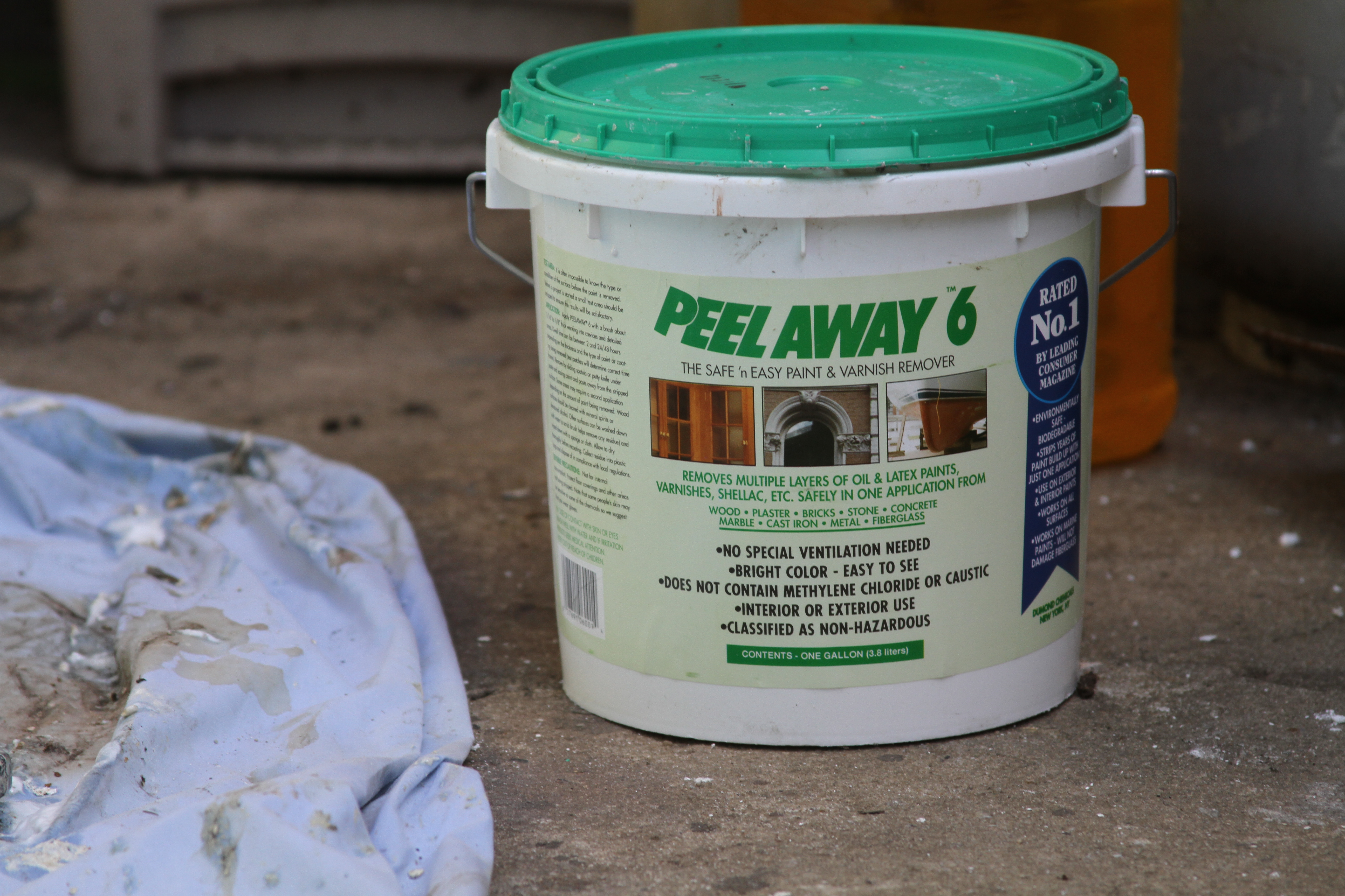 Cue the Peel Away 6. While it works pretty well, particularly for a product that is no-toxic, be prepared to do more than one application, particularly if you have many layers of paint. I have lost count as to how many buckets of this stuff we’ve used thus far.