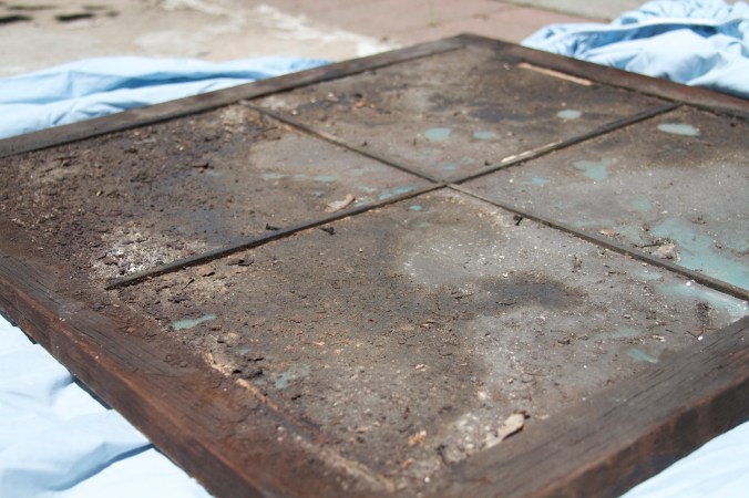 We took down the skylight window. Once in broad daylight, it was even filthier than we thought.
