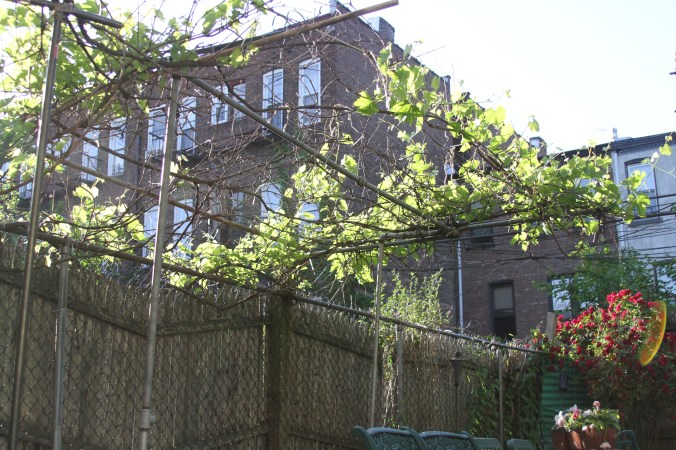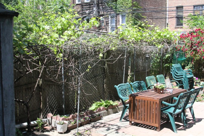 The backyard in 2013. The fence was replaced and we built a planter/retaining wall to compensate the height difference between our yard and the one behind us. It was a terrible year for tomatoes.