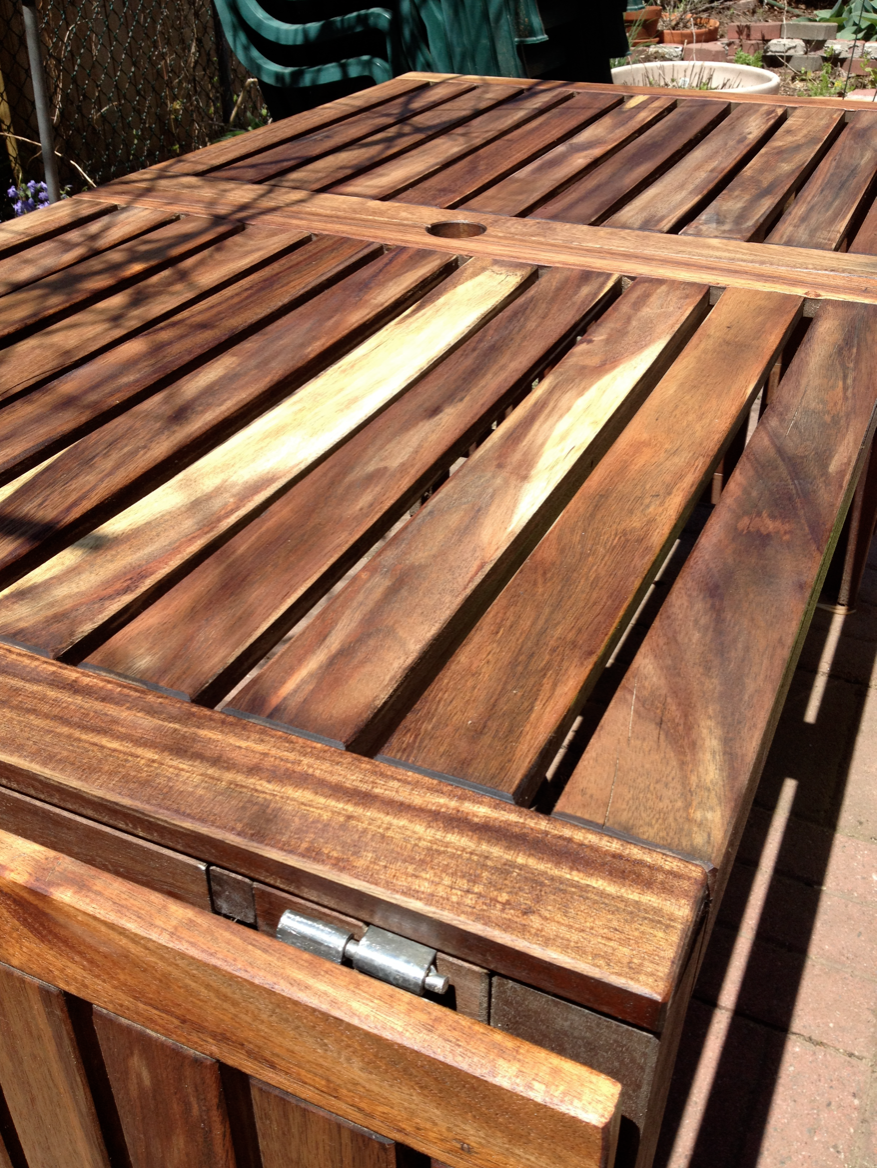 I like how the oil brought out the natural variation of the wood, previously hidden by whatever tinted finish Ikea uses. This is our first attempt at using Tung Oil outside but I figured since water just beads off, it would be a good choice. It has worked OK thus far, but I find myself re-applying it in spots here and there. On the plus side, it’s absolutely non toxic and you don’t have to worry about fumes or residue.