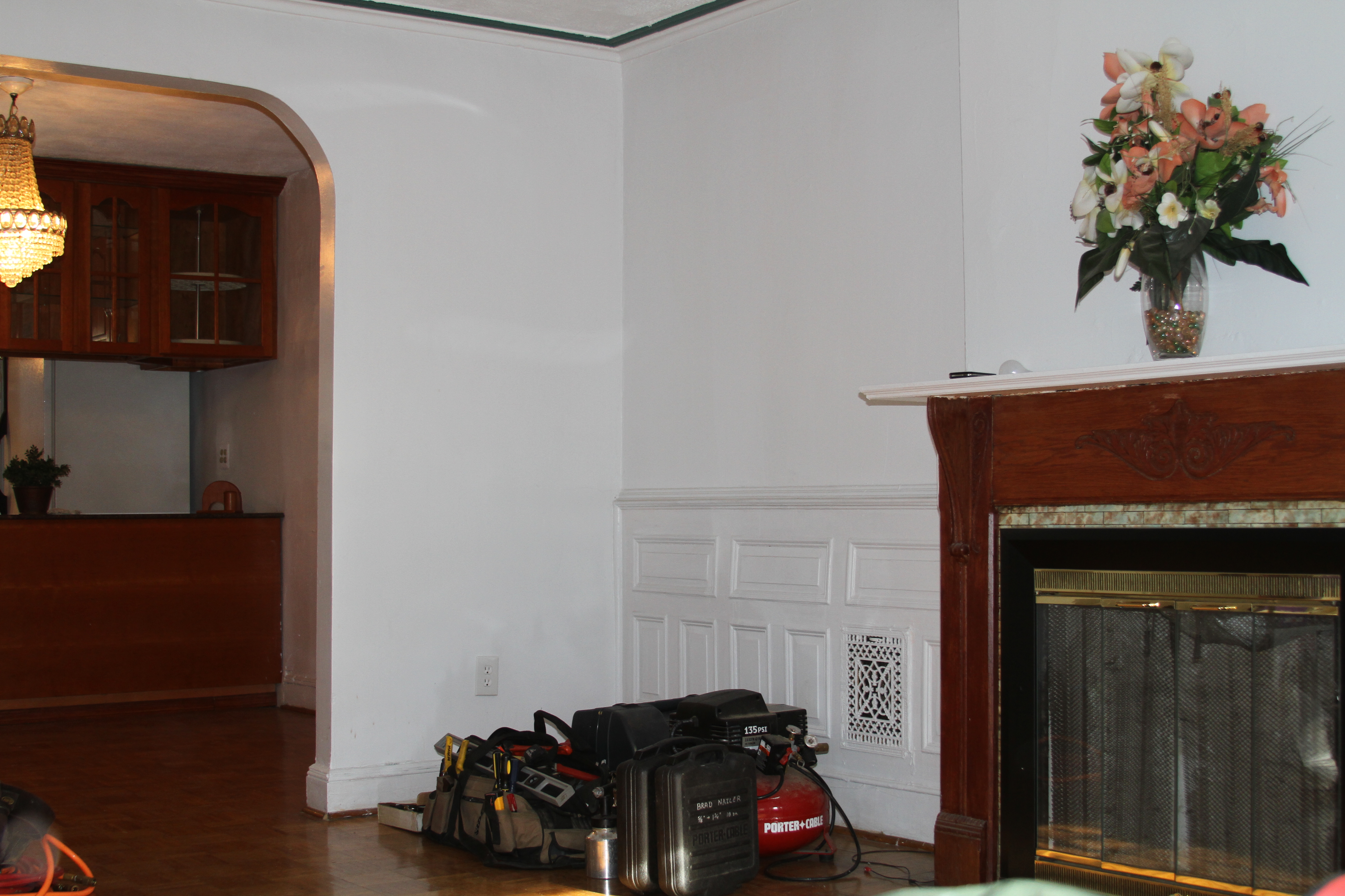 The ill fitting cover obscures most of the original tile. You can also see the open archway on the left that was replaced with the awesome set of free French doors, courtesy of the Internets.