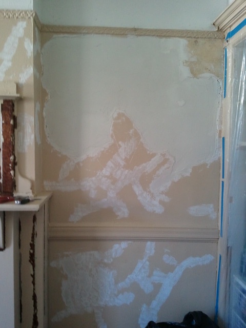 It seems that for the past 20 years (at least), the plaster at our house wasn’t properly maintained. Areas were haphazardly patched, but the underlying issues weren’t dealt with, like filling a cavity without removing the rotted bits of tooth. No stinking good.